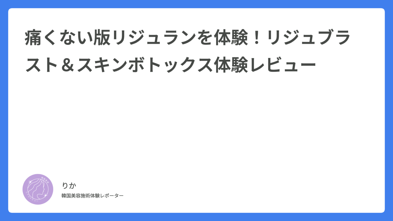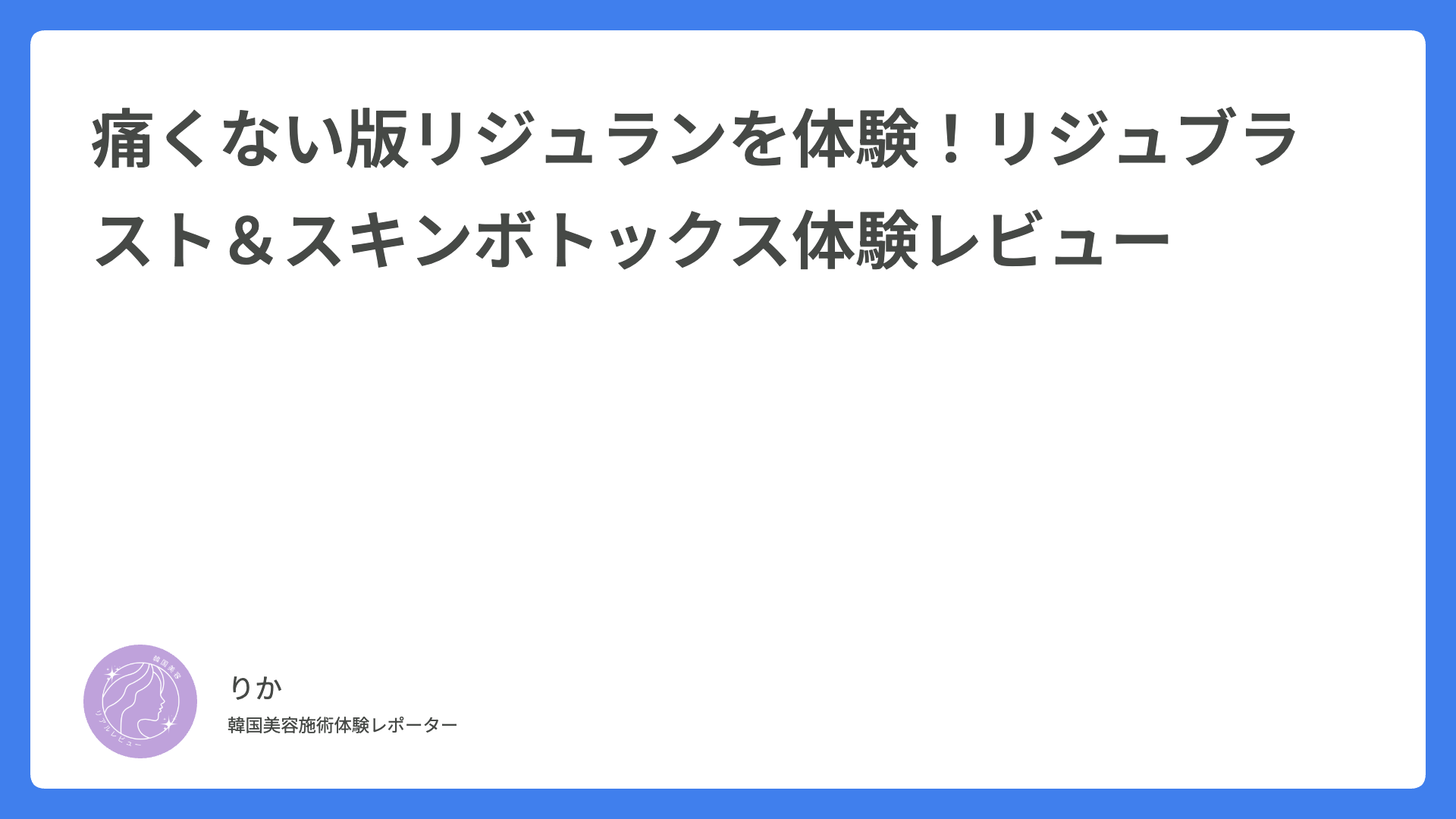 痛くない版リジュランを体験!リジュブラスト&スキンボトックス体験レビュー 2026.04.08 肌管理 admin 韓国美容リアルレビュー! チタニウムリフトは口横のポニョに効く?プムグローバル江南店での体験談を正直レポ! 2025.11.24 リフトアップレーザー admin 韓国美容リアルレビュー! T-moneyがiPhoneウォレットについに対応!設定&チャージガイド【2025最新版】 2025.11.18 旅行Tips admin 韓国美容リアルレビュー! アメックスプラチナの年会費は本当に高い?16万5千円の元を取る方法を実体験で解説!(招待リンク送ります) 2025.11.03 旅行Tips admin 韓国美容リアルレビュー! 失敗しない美容クリニックの選び方|20年で一度も後悔しなかった私の判断基準 2025.11.01 クリニックの選び方 admin 韓国美容リアルレビュー! 【体験レポ】韓国のフレッシュ整形外科が日本でカウンセリング会を開催!フェイスリフトと脂肪注入について相談してきました 2025.10.26 脂肪注入 admin 韓国美容リアルレビュー! 【経過写真あり】オメガ美容外科のCC脂肪移植&糸リフトを受けて1年|価格・ダウンタイム・持続効果【リアル体験レポ】 2025.10.13 脂肪注入 admin 韓国美容リアルレビュー! 【経過写真つき】アートメイクのモチってどう?眉・アイライン・リップの持続期間と消えやすい理由を解説! 2025.10.08 アートメイク admin 韓国美容リアルレビュー! 【リアル体験】韓国アートメイク(眉・アイライン・リップ)レポ|J.urbantouchの痛み・ダウンタイム・リタッチまで本音レビュー 2025.10.07 アートメイク admin 韓国美容リアルレビュー! 【本音コラム】糸リフトは金ドブ?本音と失敗しないクリニック選びのコツ 2025.05.24 糸リフト admin 韓国美容リアルレビュー! もっと見る