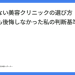 失敗しない美容クリニックの選び方|20年で一度も後悔しなかった私の判断基準
