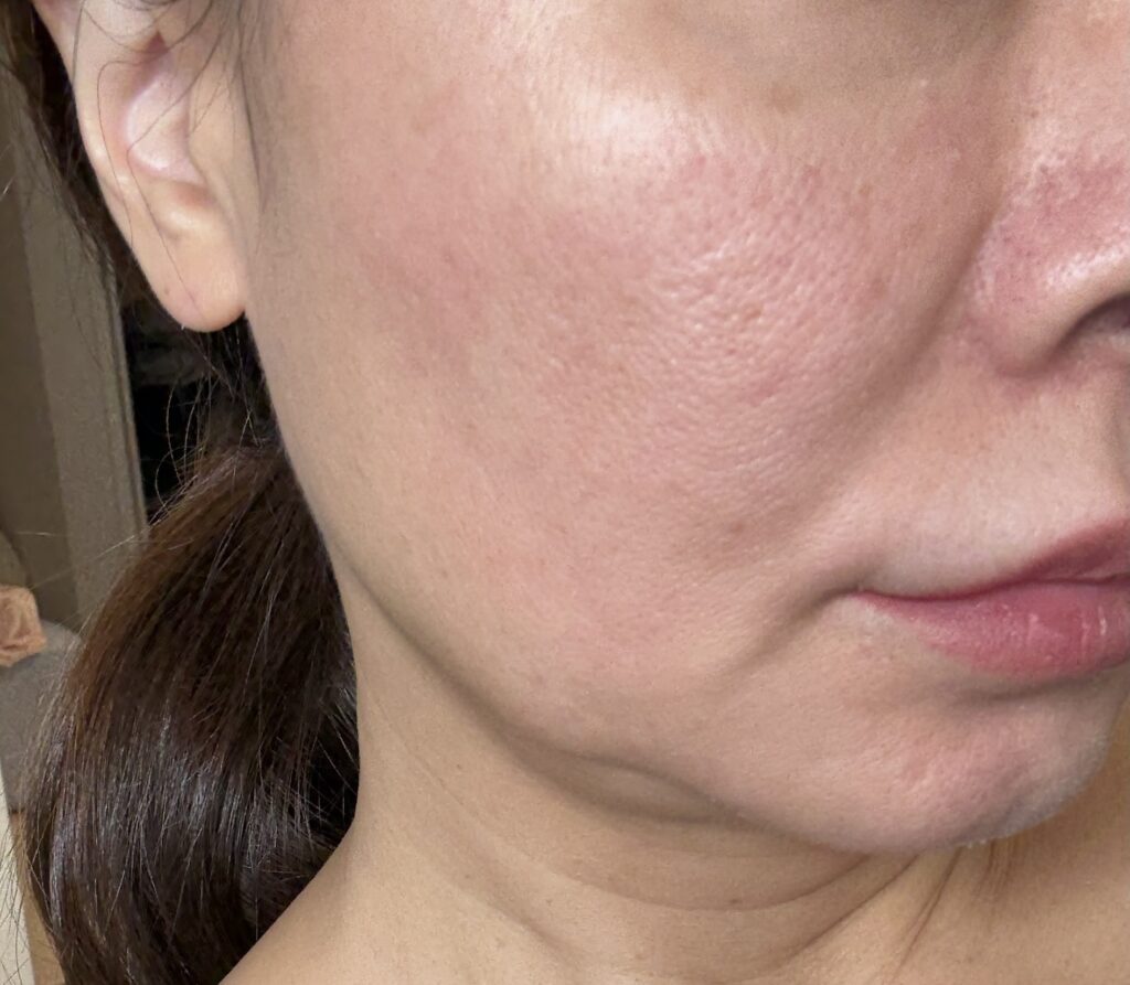 加工はまったくなしです!iPhoneのカメラで撮りました。1週間後の写真は、このつぎの記事でレポするリエンジャン美容クリニックさんでのスキンボトックスとリジュブラストの効果もあると思いますが、1番気になってた口横のポニョがだいぶ改善されました👏