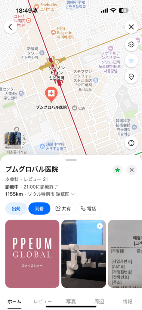 Naverマップでは「プムグロバル医院」って検索しないと出てこないので注意!